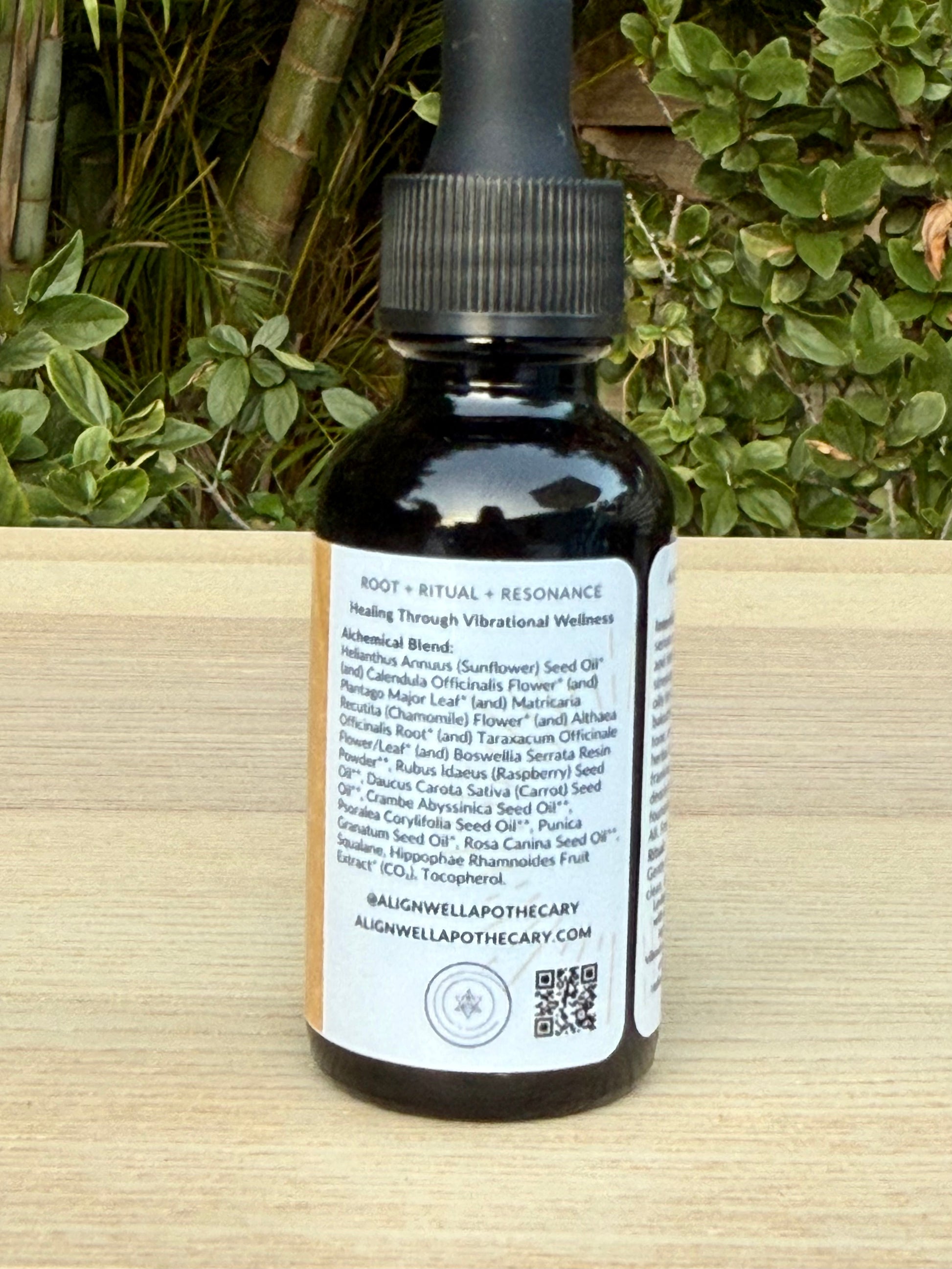 Intention: A nutrient-dense botanical serum crafted to restore, brighten, and fortify skin exposed to daily stressors. Raspberry seed and carrot seed oils for antioxidant protection, bakuchi and rosehip for renewal and tone, and a soothing sunflower herbal infusion with calendula and frankincense resin, Sol hydrates deeply while revealing a luminous foundation for your ritual